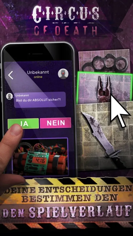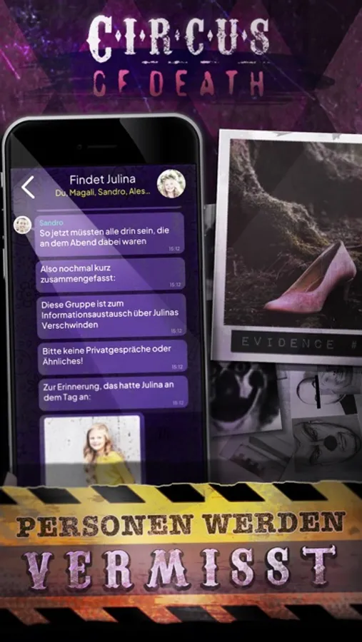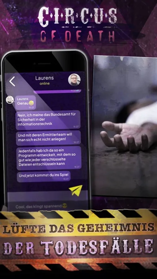 Communicate with different characters via a messenger. Unravel the dark secrets surrounding the “CIRCUS OF DEATH” and try to keep your nerve.