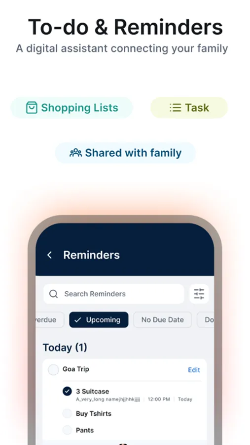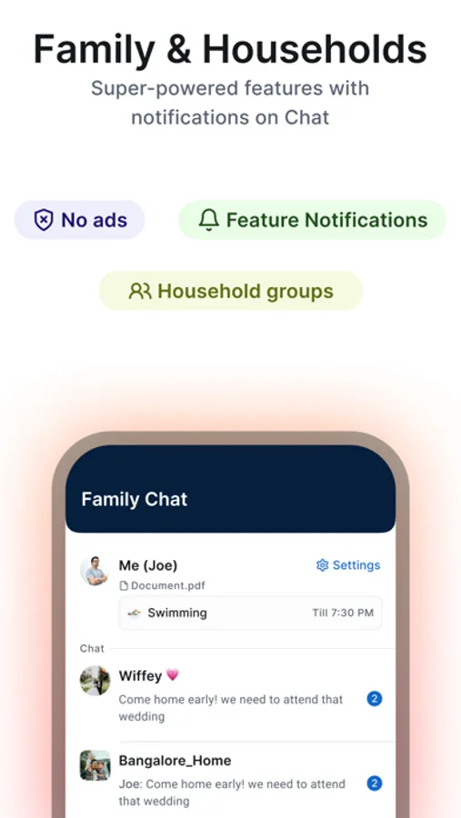 Manage family chores and daily tasks together. Anyone can add or complete tasks, with updates visible in your family chat. Set reminders for yourself or your family and stay organized easily.