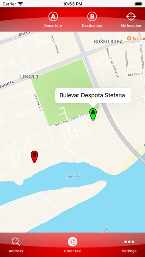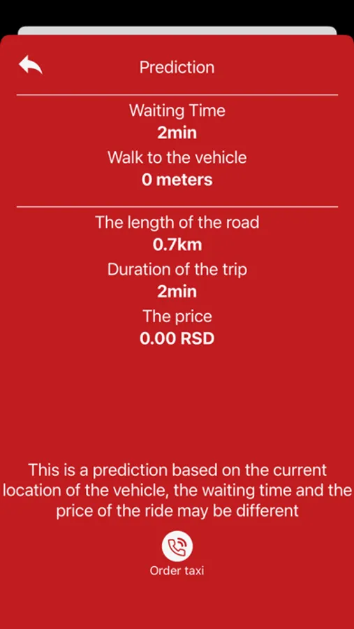 Aplikacija omogućuje naručivanje najbližeg taksi vozila uz mogućnost pregleda cene vožnje pre potvrde narudžbe. Program radi na Engleskoim i Srpskom jeziku.