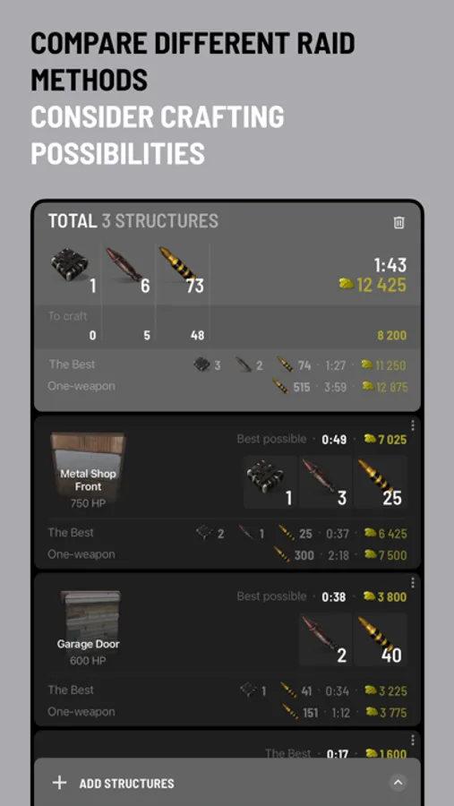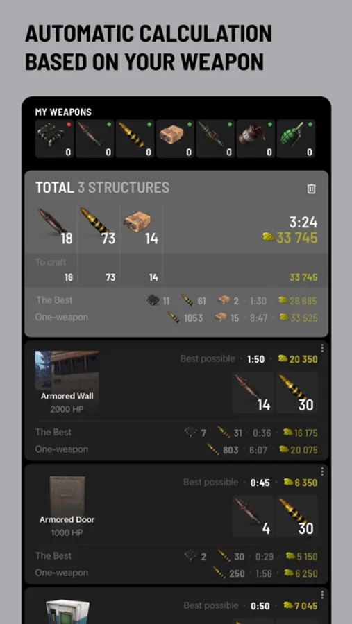 Raid Calculator - your trusty mobile sidekick for crunching numbers and plotting the perfect raid. No more guesswork or brain-busting calculations. Our auto-calc feature does the heavy lifting, sorting out the most bang-for-your-buck strategies to hit those targets like a pro. Whether you're a seasoned vet or a newbie, you'll always be one step ahead, making those sweet, sweet raid decisions.
