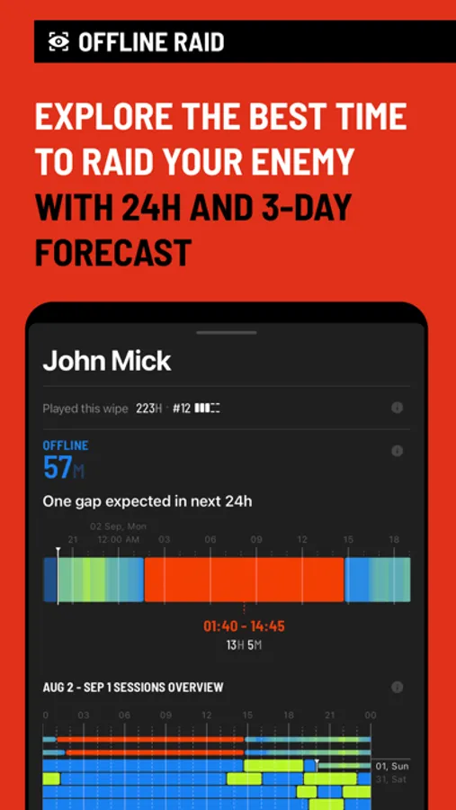 - 24-Hour Raid Predictions: Get the edge with accurate raid forecasts for the next 24 hours, plus a 3-day outlook to stay ahead of the game.