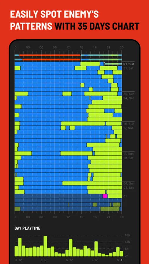 - Activity Heatmap: A super convenient and detailed activity chart showing enemy аctivity and patterns over the past month, so you know exactly when to strike.