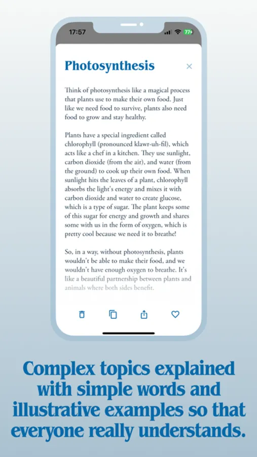 - Understand with ease: Our AI provides explanations in simple language, enriched with fun comparisons and examples, ensuring you grasp even the most complicated topics effortlessly.
