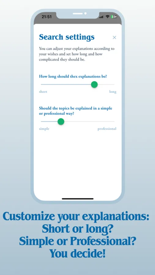 - Customize your learning: Choose how you want to learn! Pick short and sweet explanations for quick insights, or go for longer, detailed ones when you're curious for more. Plus, you can decide if you want really simple explanations for a quick grasp or more professional ones for in-depth understanding.