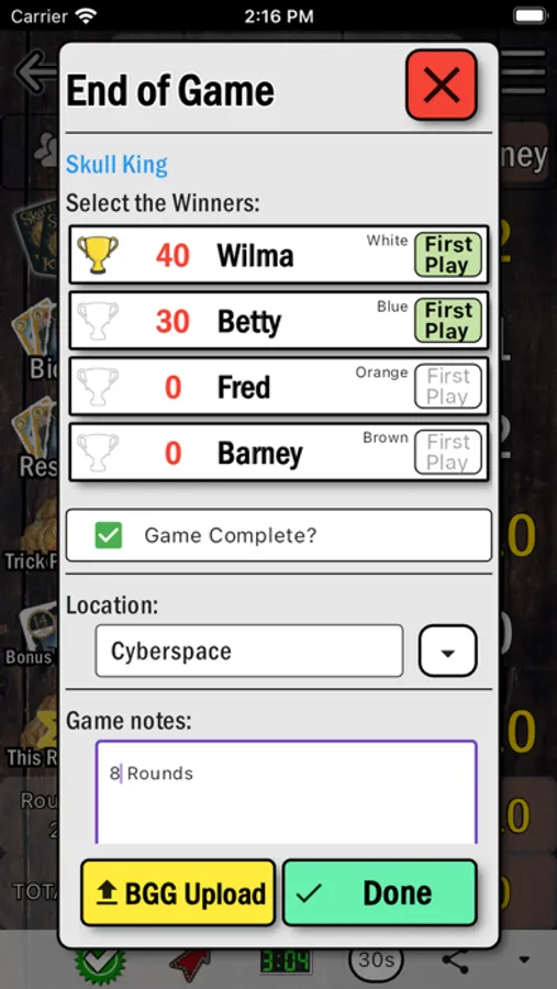 Spend more time playing your favourite table top board games and less time fiddling with complicated scoring. And when you are done, easily upload your game play to your favourite board game website! General scoring and custom scoresheets for many games. Have fun and keep gaming!