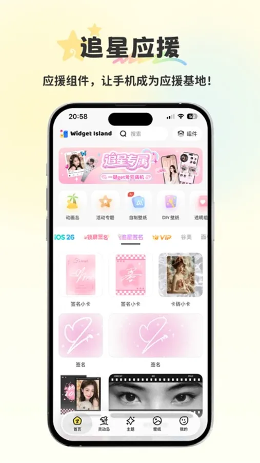 锁屏组件:爱豆签名、充电组件、可爱动画,实用设置,简单有趣。