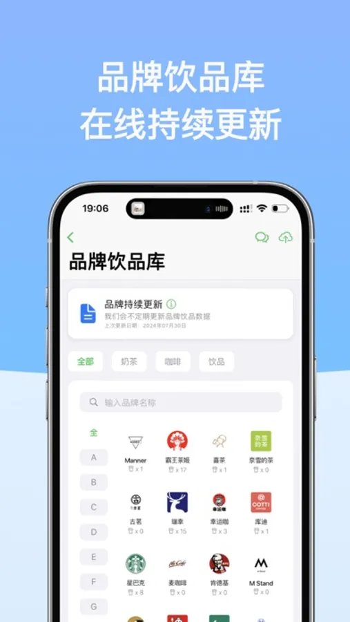 饮品库:整理您常喝的品牌,快速选择,让记录变得更便捷。