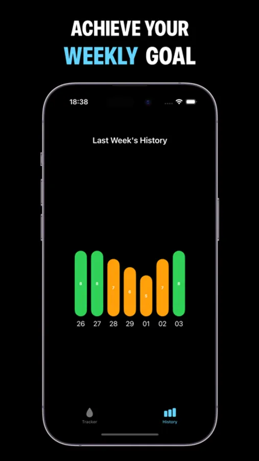 Last Week History: Access insightful data on your hydration habits by reviewing your previous week's water intake history directly from your iPhone or Apple Watch. Track your evolution over time, celebrate milestones, and make well-informed adjustments to sustain consistent hydration levels and uphold optimal wellness.