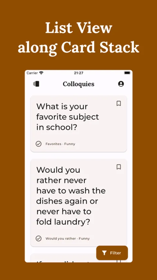 • Whether you're using Colloquies for team-building activities, icebreakers, or simply to spark engaging conversations with friends and family, we're committed to providing a platform that fosters genuine connections and promotes personal growth. Join us on this journey of exploration, discovery, and connection as we build a community centered around meaningful conversations and authentic connections.