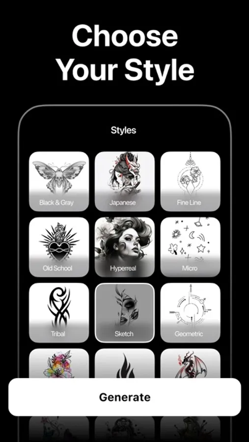 - Tattoo Generator with Endless Inspiration: Our AI tattoo generator gives you endless tattoo ideas at the tap of a button. Skip generic designs and create custom tattoo designs that match your personality and style.
