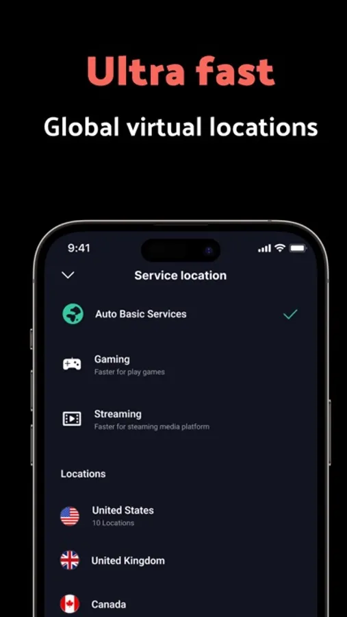 • Fast, will connect to the fastest and most nearest VPN proxy server.