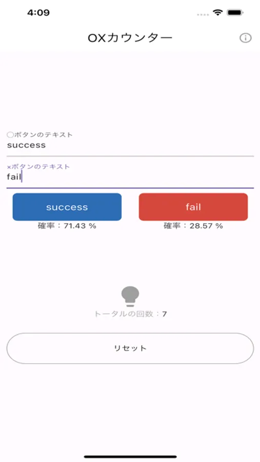 ○と×の回数をカウントし、それぞれの確率をリアルタイム表示できるシンプルなアプリです。スポーツやゲームの練習におすすめです!