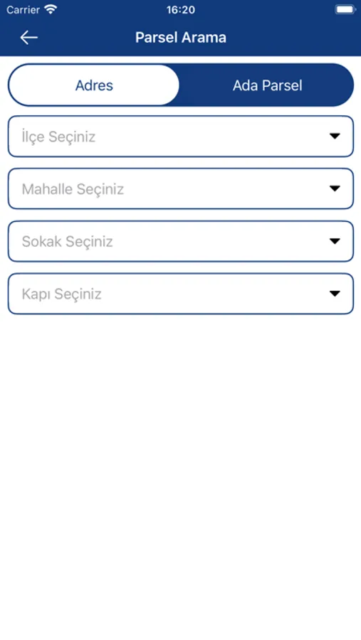 Uygulamanın arama ekranında istenilen parsele adres bilgileri veya ilçe/ada/parsel bilgileri ile ulaşılabilmektedir. Ayrıca harita uygulaması üzerinden parsel seçimi yapılarak da sorgulama yapılabilmektedir.