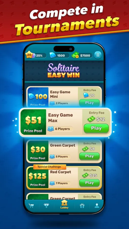 Experience the timeless appeal of Classic Klondike Solitaire with a modern twist. EasyWin takes your favorite card game to the next level, offering exciting tournaments where skill meets the chance to win real money.