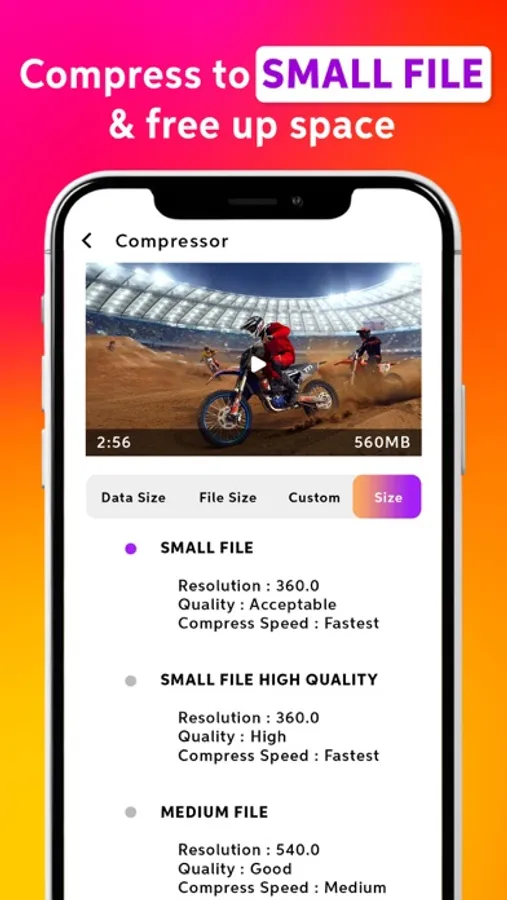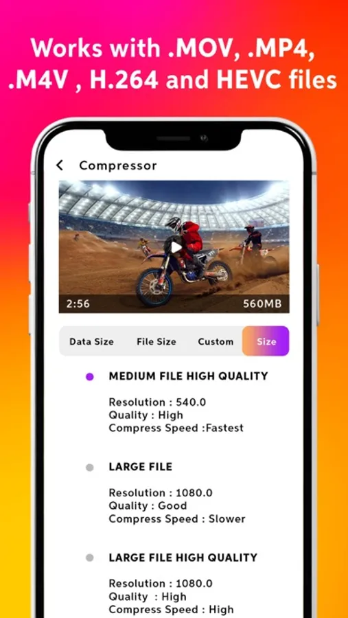 This free video compressor app has the predefined useful size options like 25 MB, 16 MB, 1O MB, 50 MB that easily reduces the video size to share it on social media platforms easily.