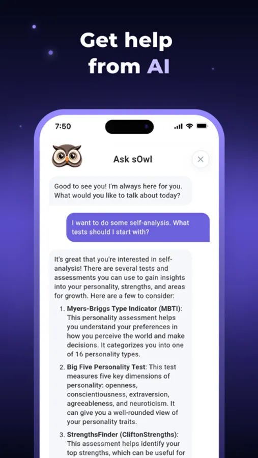 sOwl will become your assistant and advisor on the path of self-development and understanding of your inner world.
