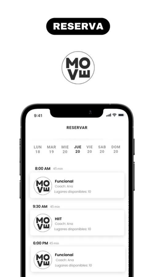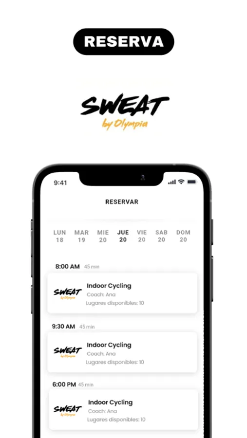 Contamos con diferentes clases incluyendo: SWEAT (Indoor Cycling), FLOW (Yoga, Box, Animal flow, y Calistenia), MOVE (Entrenamiento funcional, HIIT, Abs)