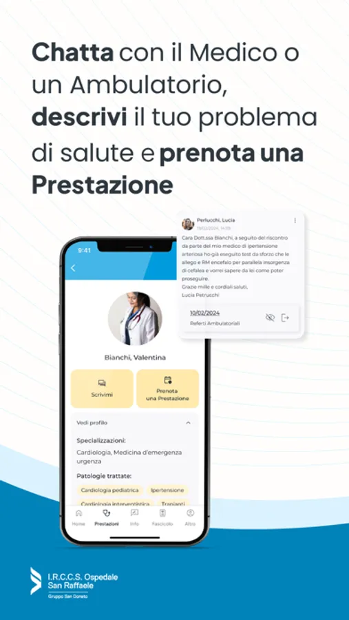 L’App di Ospedale San Raffaele consente ai Pazienti una comunicazione diretta e continua con gli specialisti di Ospedale San Raffaele, sia per un primo contatto che durante tutto il percorso di cura.