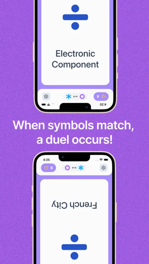 - Duel: When symbols match, it's a duel! Race to shout a word from your opponent's category before they shout one from yours.