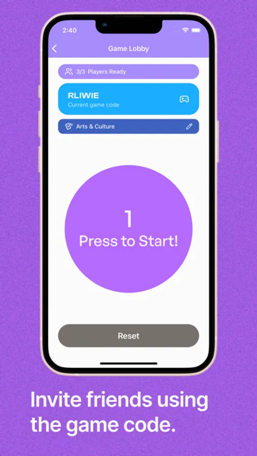 - Set up: Gather 3-8 friends IRL, launch Gazooks, and arrange phones in a circle. Create a game and let others join instantly by scanning the QR code.