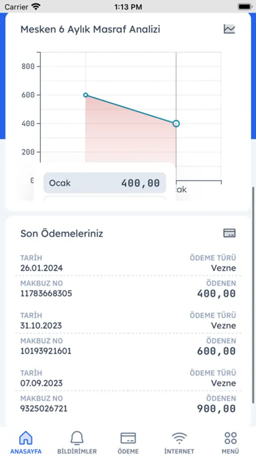 Geçmiş borçlarını ve makbuzlarını görüntüleyebilirsiniz.