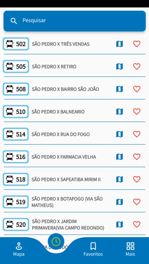 - Favoritar linhas. pontos de parada e deslocamentos planejados