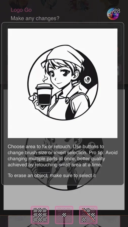 1. Briefing the AI: When you launch the app, you'll be prompted to enter a short description of your business. You can include your business name, the industry you operate in, any preferred color schemes, and the overall vibe you aim for (e.g., modern, vintage, sophisticated, playful). The more precise your description, the more tailored the logo concepts will be to your brand's personality and values.