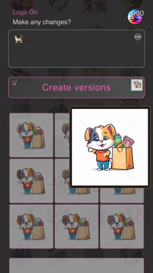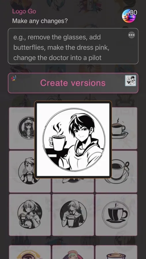 2. Generating Concepts: After submitting your description, Logo Go's AI will process the information and create a set of 9 unique logo drafts. These drafts serve as a diverse starting point, offering you a variety of styles and elements that resonate with your brand's description. The AI employs advanced algorithms to ensure that each draft is not only aesthetically pleasing but also relevant to your business sector and target audience.