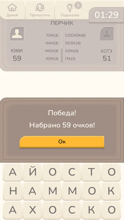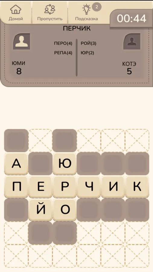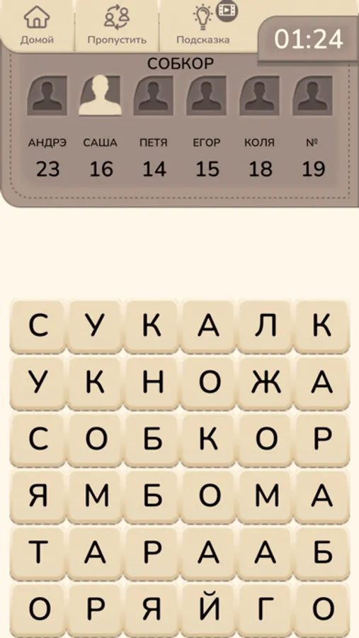 Составь слова – увлекательная игра для тренировки памяти и повышения словарного запаса. Смысл игры - составить слова из букв другого слова на игровом поле. При этом игра может идти либо против бота, либо с другими игроками на одном устройстве.
