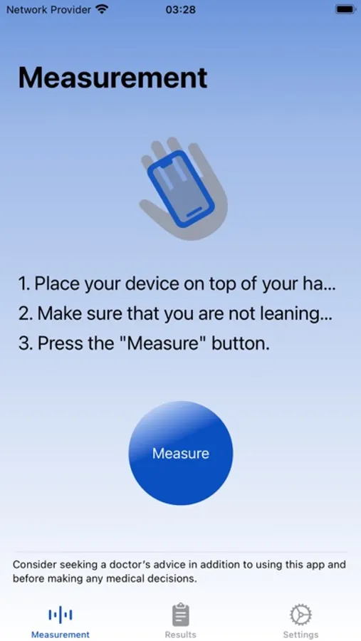 3) The application takes about 10 seconds to measure your current hand tremor.