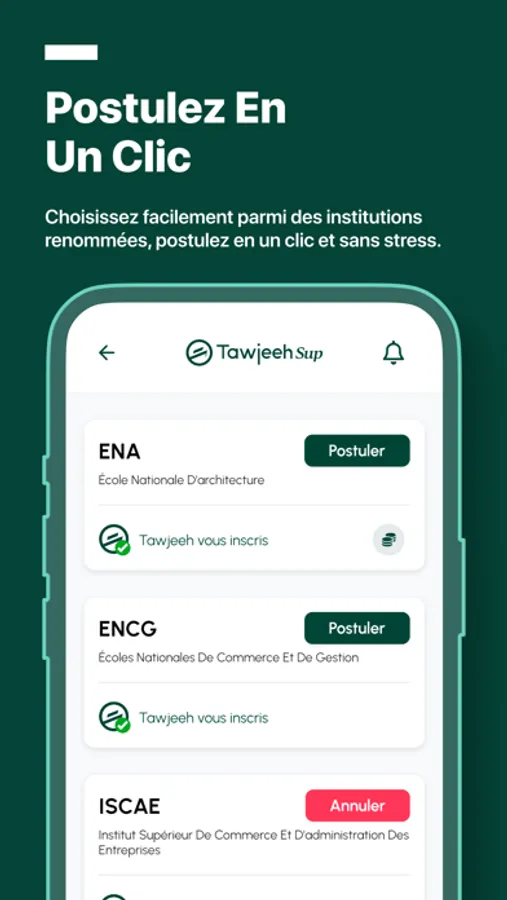 Postulez en un clic à plus de 40 grandes écoles au Maroc avec l'application Tawjeeh Sup.