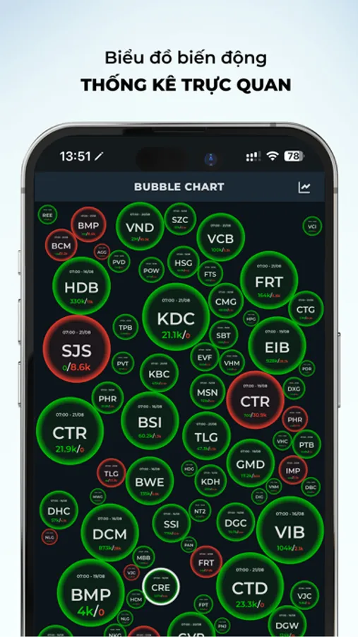 STOCKMAP là nền tảng tích hợp nhiều công cụ phân tích dòng tiền tiên tiến, được thiết kế đặc biệt cho thị trường chứng khoán Việt Nam. Là ứng dụng thể hiện trực quan dòng tiền thật sự trên biểu đồ dựa trên phân tích dữ liệu khối lượng. Kết nối dữ liệu toàn bộ thị trường theo thời gian thực, góc nhìn tổng quan về cổ phiếu, trái phiếu, phái sinh.