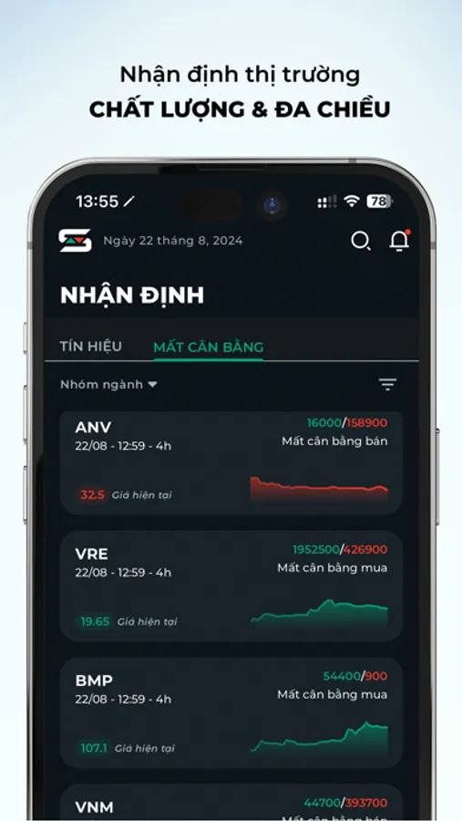 6. Cảnh báo và nhận định đáng tin cậy: Hệ thống cảnh báo và tín hiệu được ứng dụng công nghệ AI đưa ra các thông tin giúp nhà đầu tư có thể đánh giá được sức mạnh của cổ phiếu. Bộ lọc đa dạng sẽ giúp bạn luôn nhận các thông báo mới nhất về biến động bất thường của các cổ phiếu bạn đang quan tâm một cách kịp thời và hiệu quả.