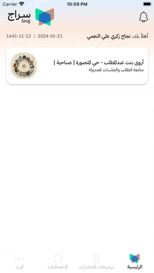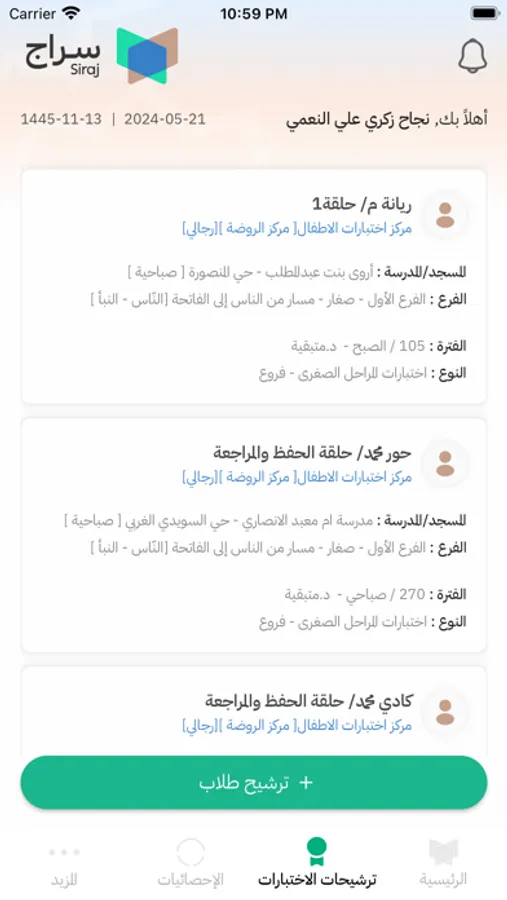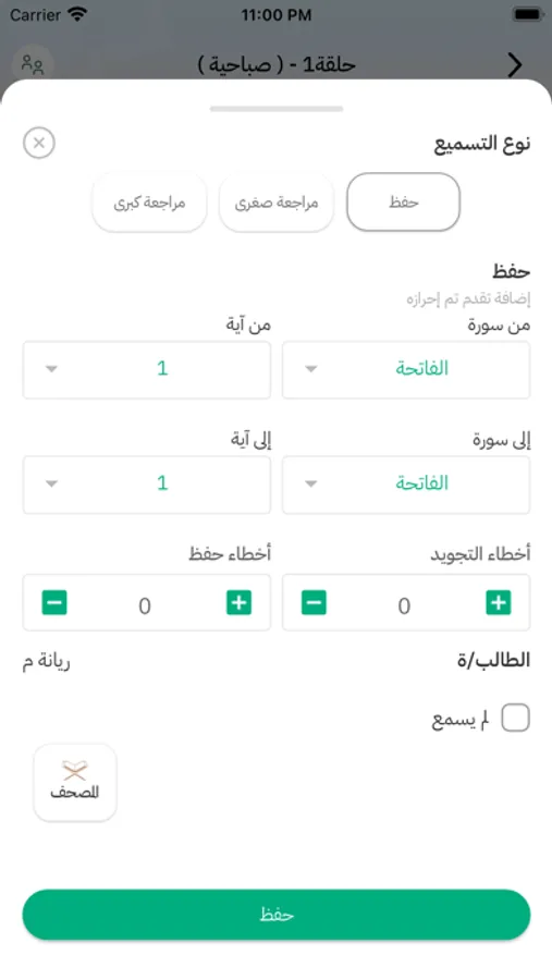 تطبيق لإدارة عمليات المعلم اليومية في حلقات تحفيظ القرآن