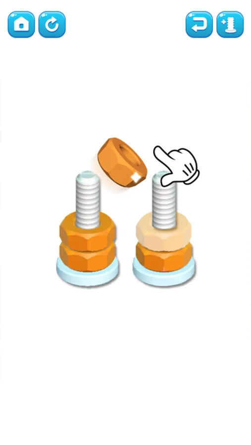 - Become the master of stacking nuts and pins smoothly as each level adds more interesting challenges.
