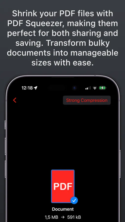 PDF Squeezer, the beloved Mac app, is now available for iPhone and iPad! Effortlessly reduce PDF file sizes with customizable compression settings to save space without losing quality. Process files securely on your device, ensuring total privacy with no internet connection required. Experience this well-known app's magic with an unlimited free trial!