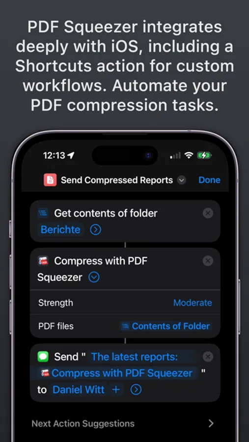 PDF Squeezer integrates deeply with iOS, including a Shortcuts action for custom workflows. Automate your PDF compression tasks.