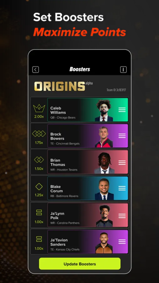 The NFL Draft is the second most popular event in American Sports. Our Origins tournament is ideal for dynasty league enthusiasts. Just draft 6 rookies, set your player boosters, and watch your favorite prospects becoming NFL superstars.