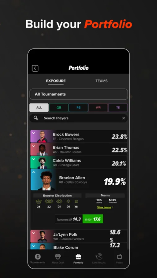 Track players like stocks with FastDraft’s built-in Portfolio. Click a button to share your fantasy receipts with friends, family, and competitors on social media in real-time.