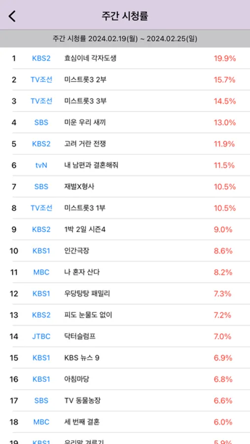 - 실시간 편성 정보를 한눈에 손쉽게 확인