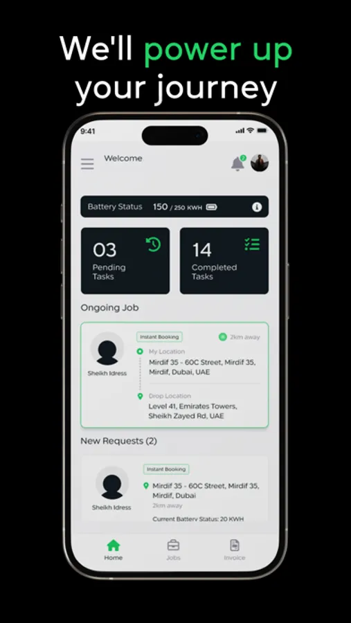 Join our team of mobile EV charger drivers and help power Dubai's electric vehicle revolution. Our app connects you to a fleet of mobile charging stations, enabling you to deliver power directly to EV owners whenever and wherever they need it. With our 24/7 service, you’ll be part of a mission to enhance the UAE's EV charging landscape using cutting-edge DC Fast Charging technology compatible with all EV types. Download the Driver App now and start delivering power on demand. Together, we can save time, support the environment, and ensure that every EV driver in Dubai stays charged and on the move.