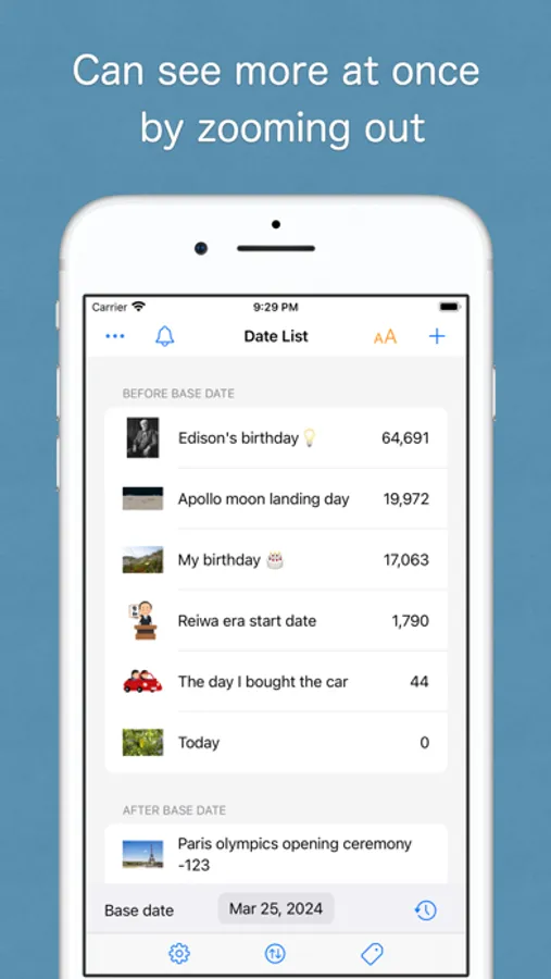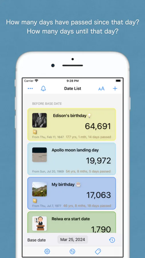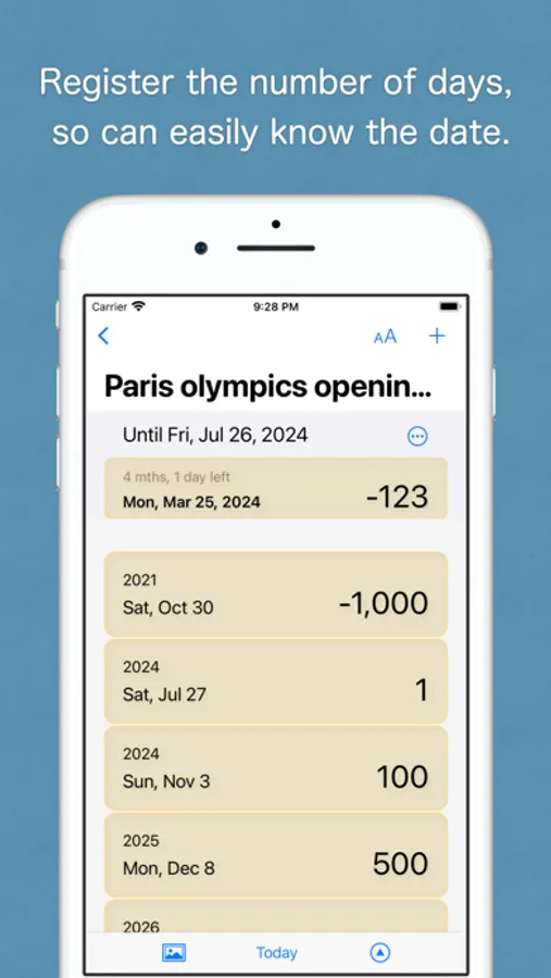 By registering dates of interest, such as anniversaries or events, you can easily check the number of days from that date.