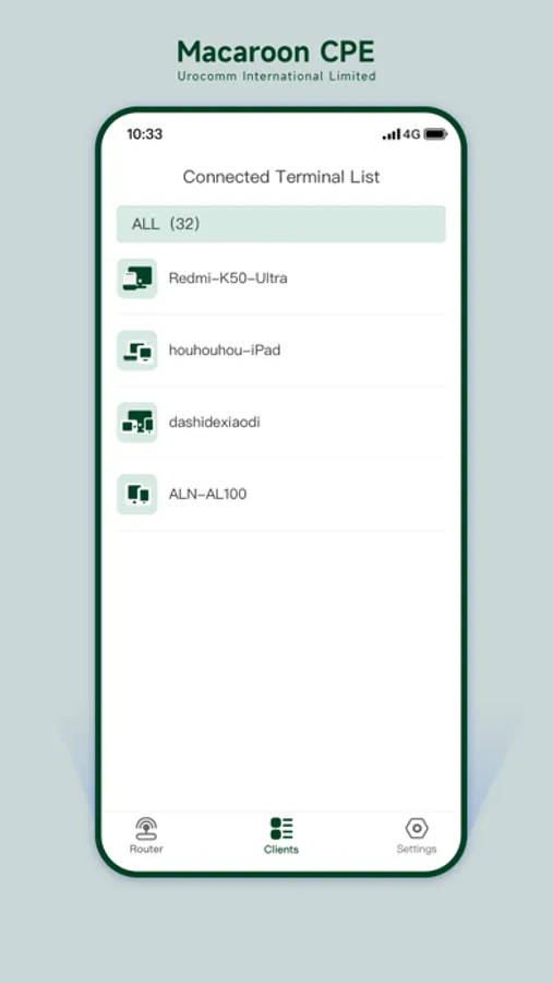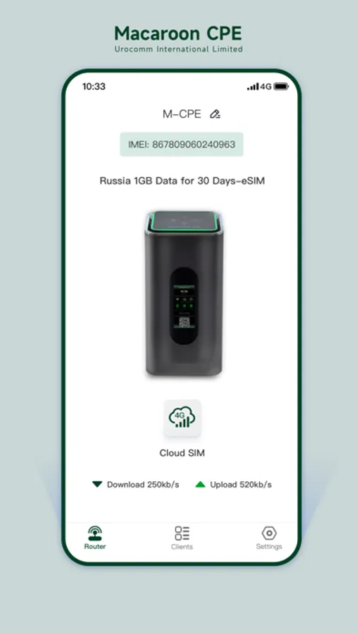 Macaroon CPE APP is a software to control your CPE router. CPE device supports three ways to access the Internet: physical SIM card, WAN NETWORK connection and Cloud SIM connection, which can meet your daily Internet needs. Through the APP you can realize CPE connection, CPE wake-up, CPE screen brightness adjustment, language switching and other functions, allowing you to control CPE anytime and anywhere, making life more convenient.