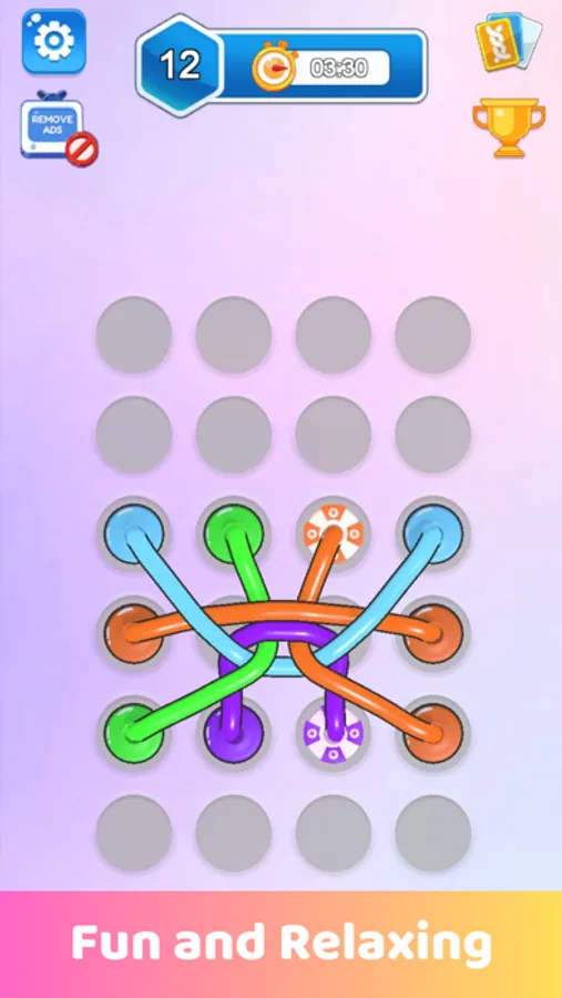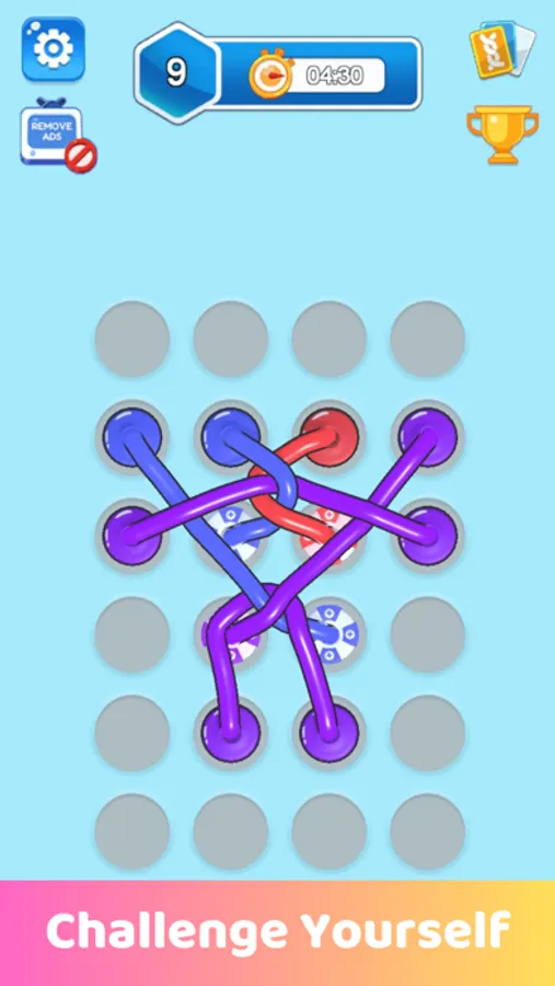 Think quickly and strategize as you move the ropes to untangle the knots.