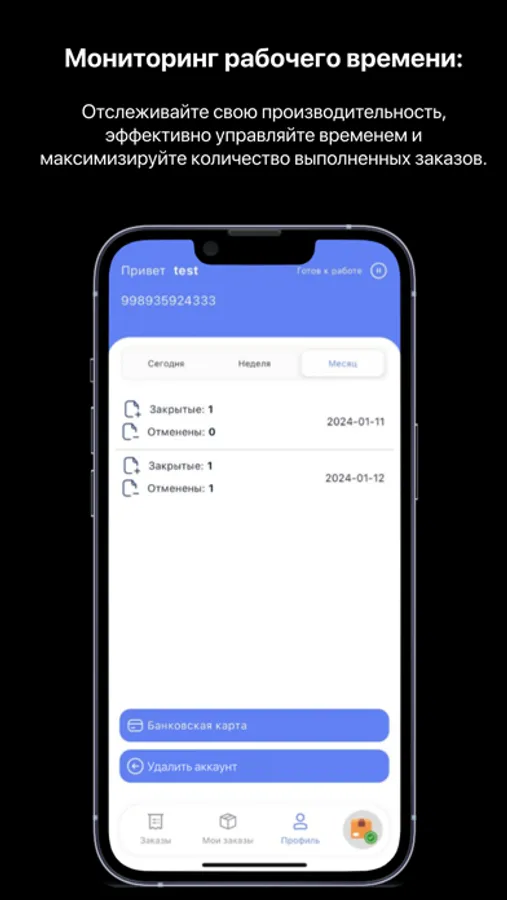 Завершение Доставки: Подтверждайте завершение доставок одним нажатием. Это помогает вести точный учет выполненных заказов и обеспечивает своевременную доставку.