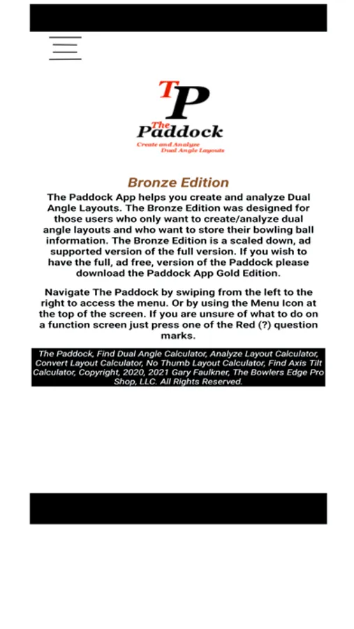 The Paddock is a resource for competitive bowlers, those who want to be competitive bowlers, and Pro Shop Professionals. For the Pro Shop Professional, The Paddock offers a way to efficiently develop Dual Angle Layouts for your customers and analyze an existing layout on a ball that they have brought in. For the Bowler, The Paddock helps you understand how different Dual Angle Layouts influence the bowling ball's motion and reaction. The Paddock is designed to compliment and enhance the services that your favorite Pro Shop Professional provides.