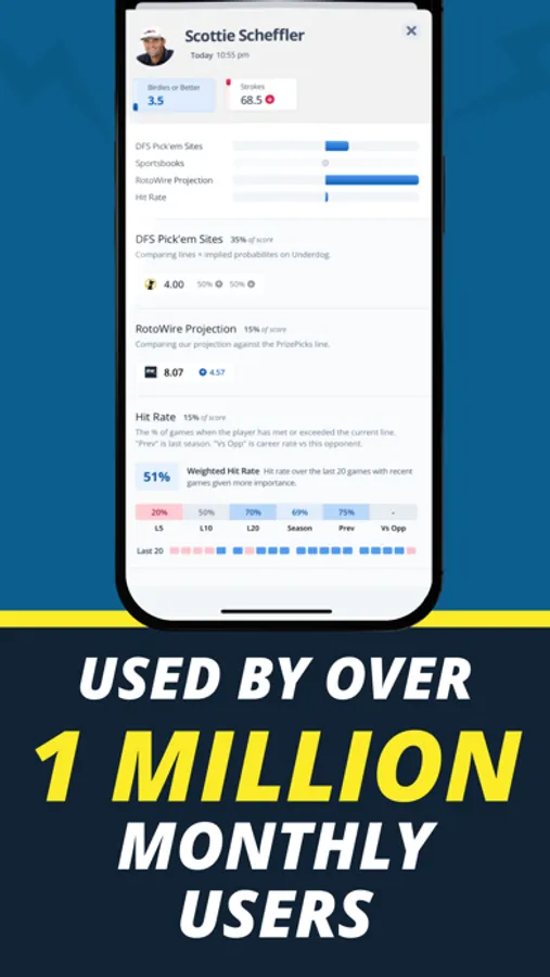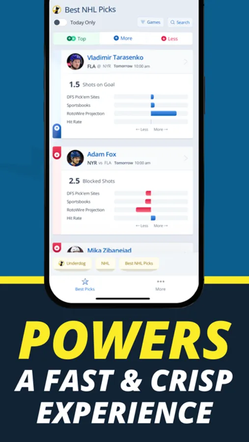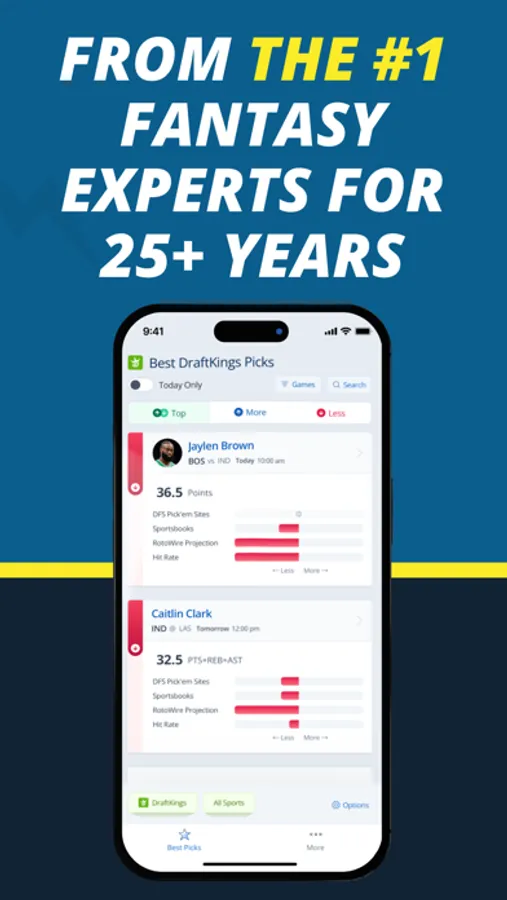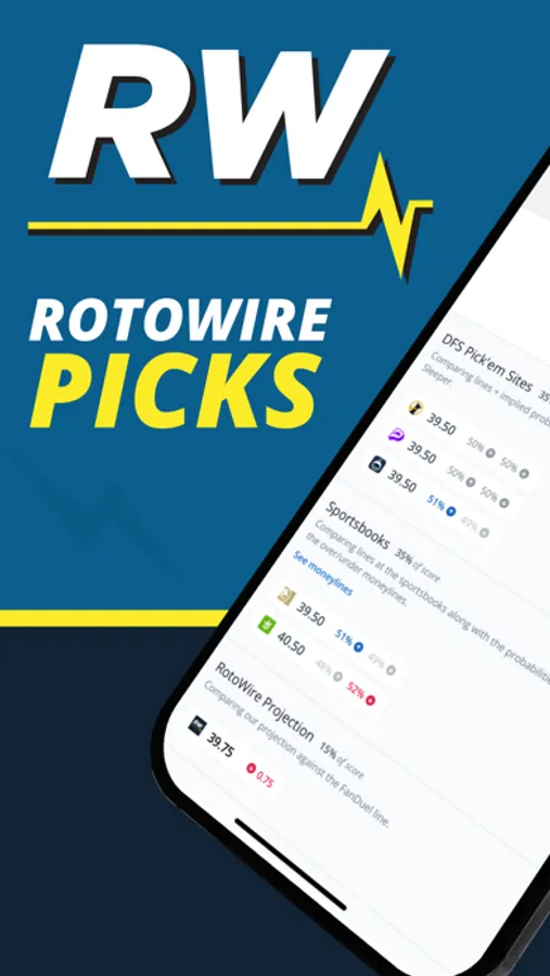 RotoWire Picks is your new edge for making winning player prop bets across the NBA, NFL, NHL, and college football. Built by RotoWire, the most trusted name in fantasy sports and betting data for over 25 years, this app gives you the power to analyze every prop that matters more accurate than ever.