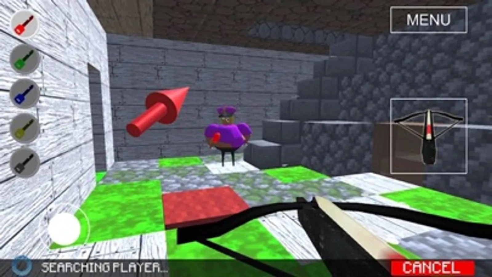 If you play as obby then you have to run away from barry family (wife barry, little green son, barry the father) the prison lobby .