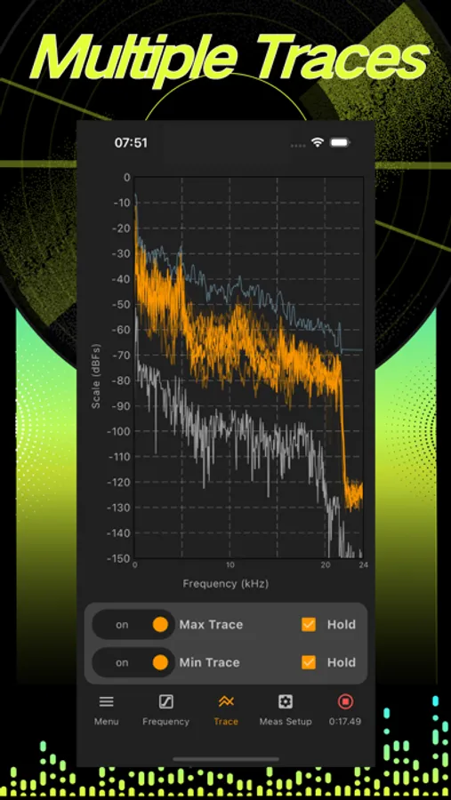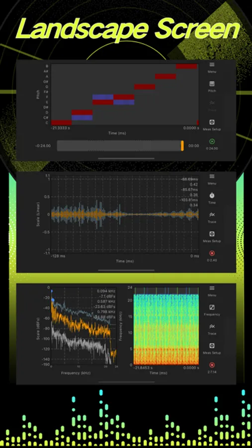 Supports a variety of measurement modes such as spectrum analysis, phase spectrum analysis, audio oscilloscope, persistence spectrum, power distribution, spectrogram, etc.