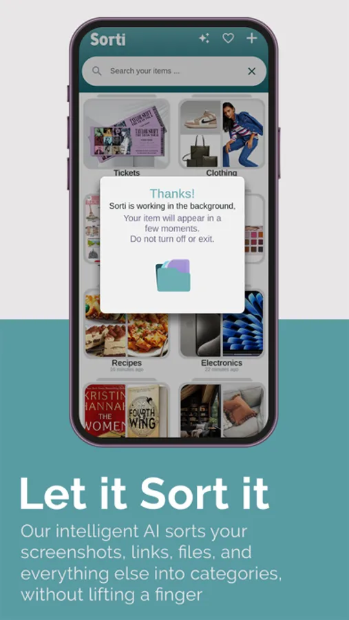 Our intelligent AI intuitively sorts your screenshots, links, or files, and everything else into categories, without lifting a finger and it's completely free!